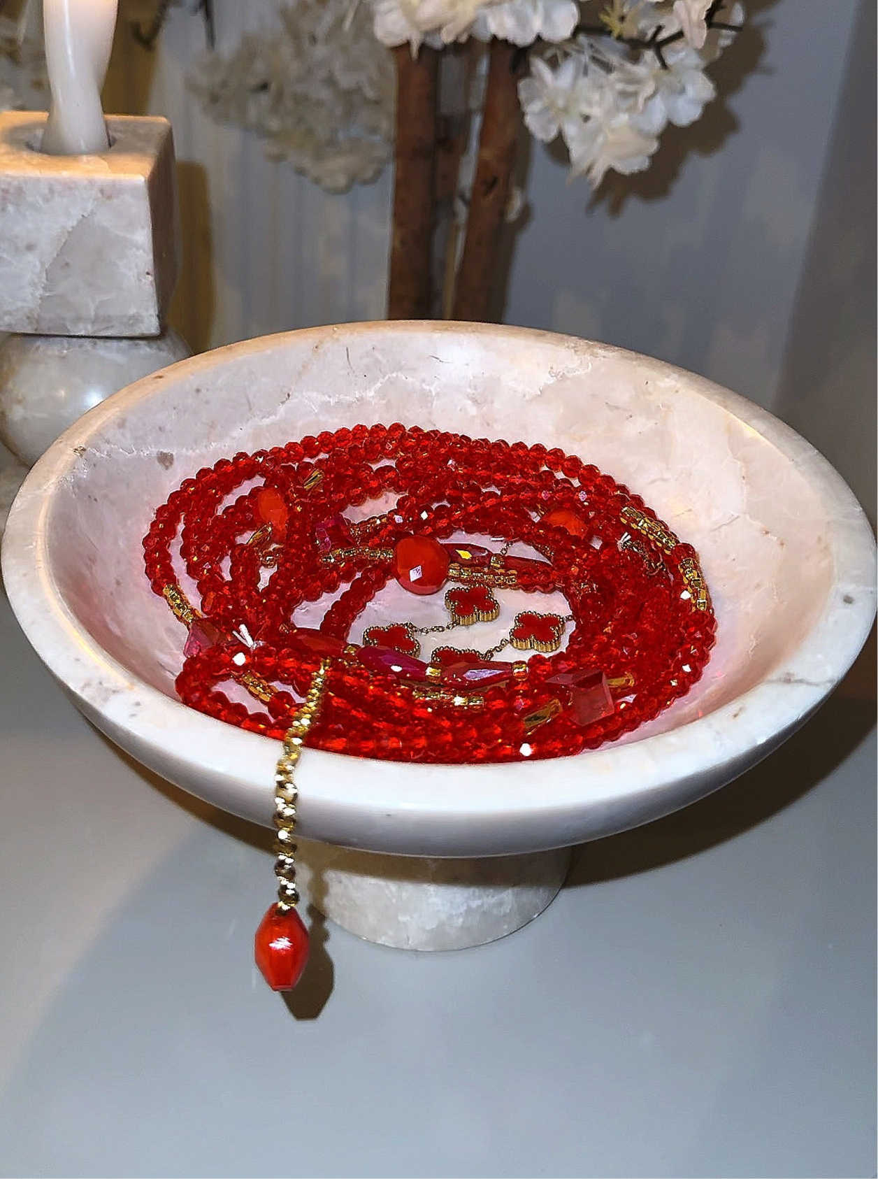 Découvrez L’IRRÉSISTIBLE : Perles rouges de taille moyenne, magnifiquement accompagnées de trèfles rouges et dorés. Un bijou qui associe la vivacité du rouge à l’éclat du doré, créant une pièce audacieuse et élégante. Les trèfles, aux teintes rouges et dorées, ajoutent une touche de raffinement tout en mettant en valeur la passion et la chaleur des perles rouges. Un accessoire parfait pour sublimer chaque mouvement avec caractère et finesse.