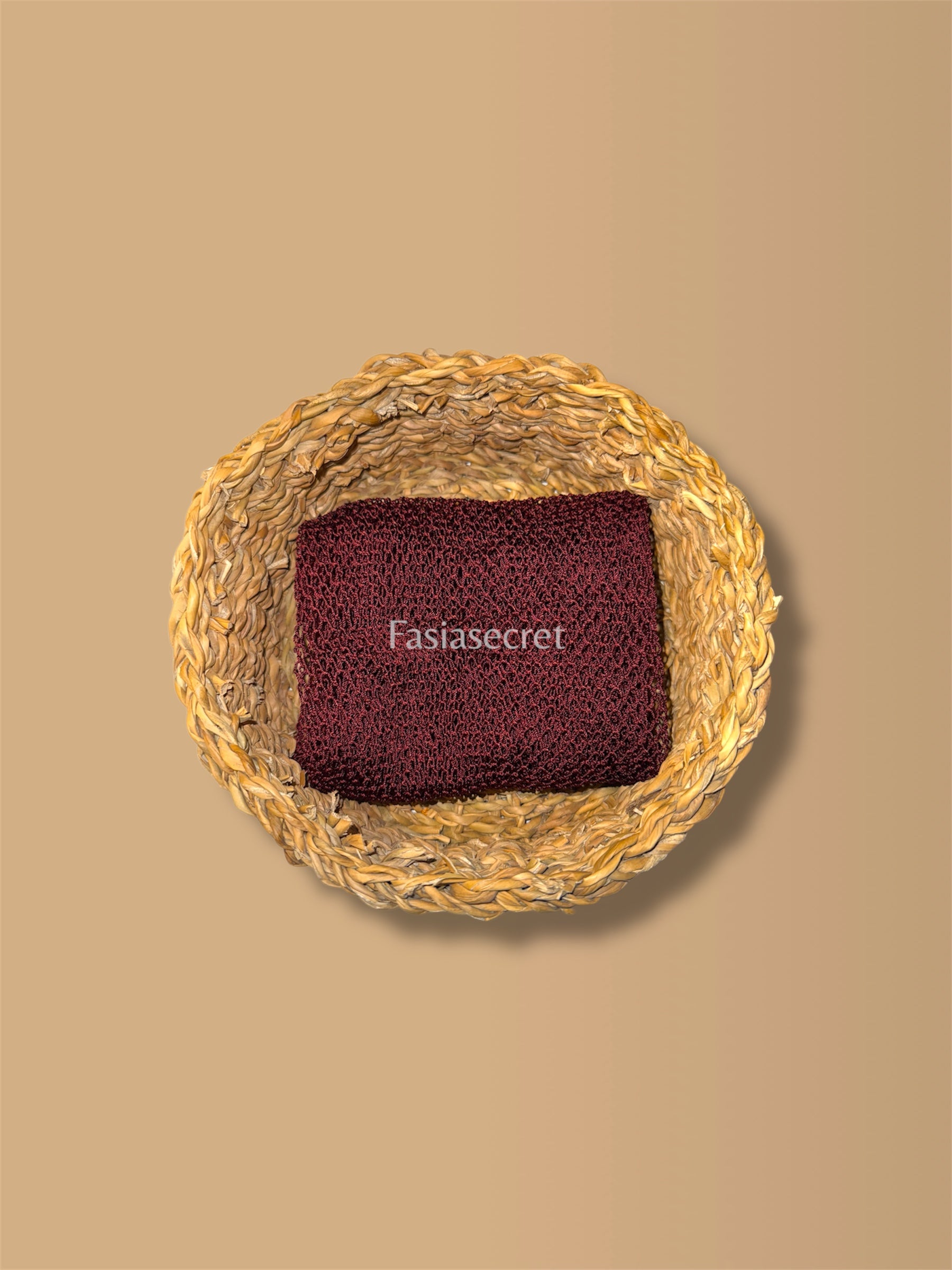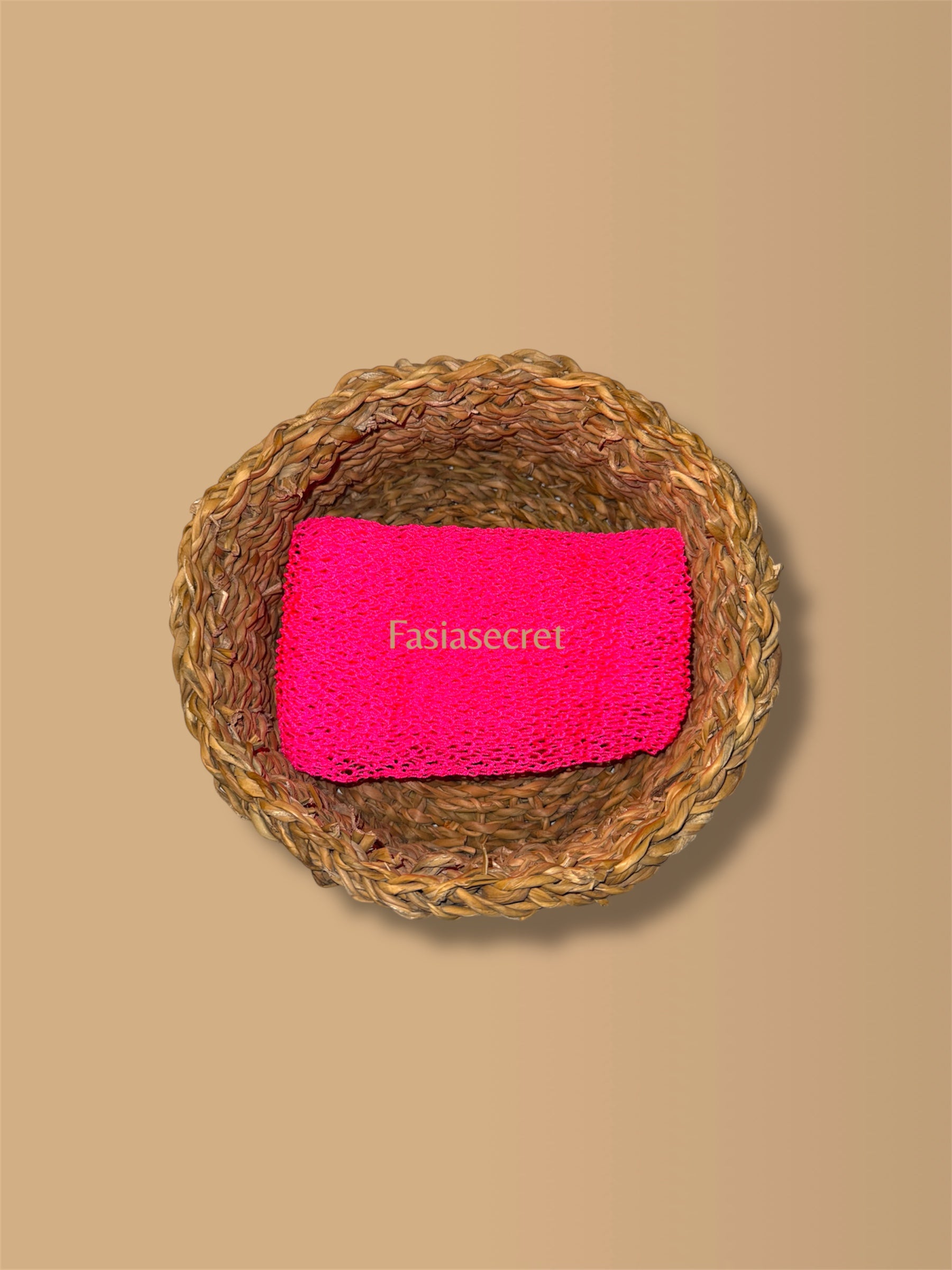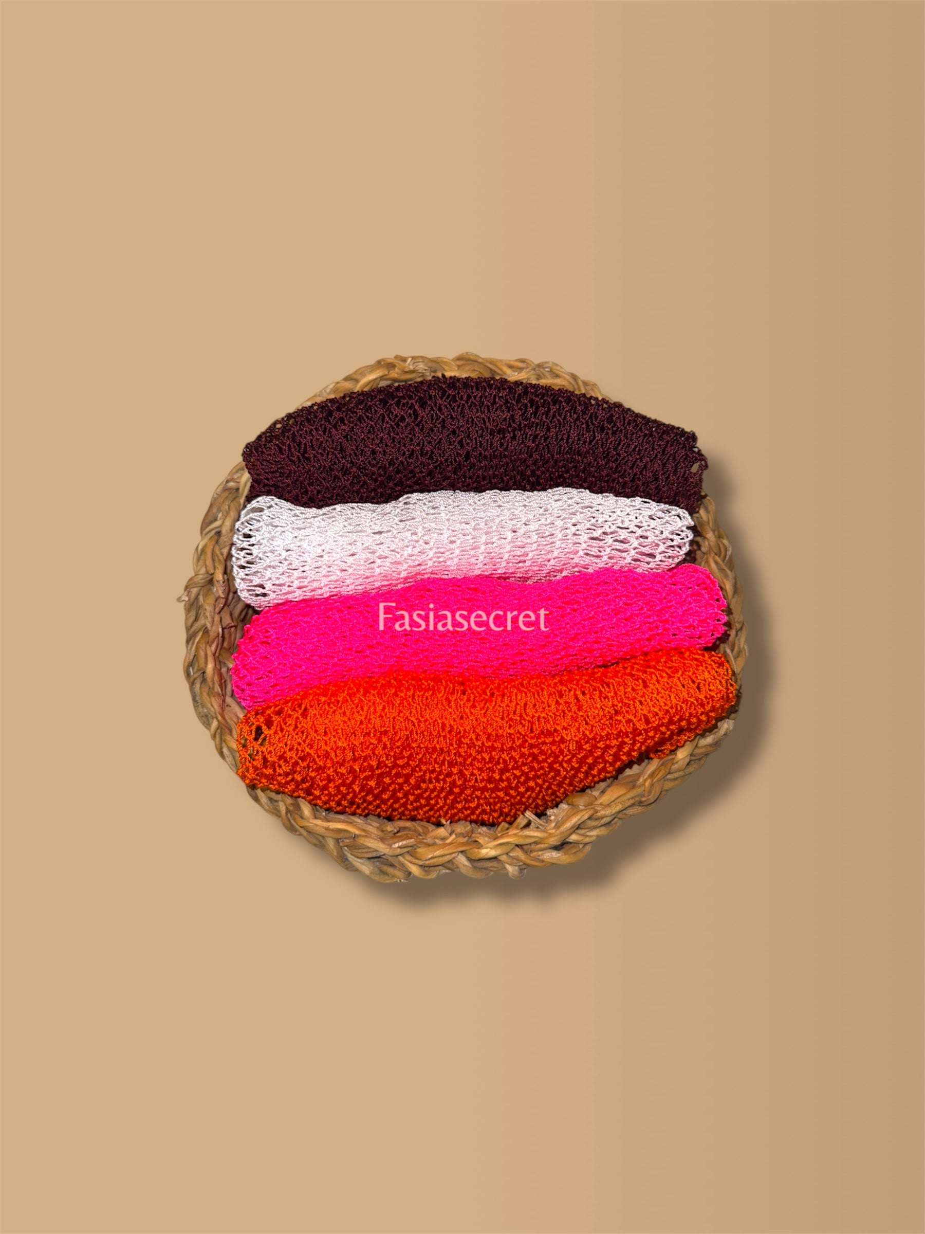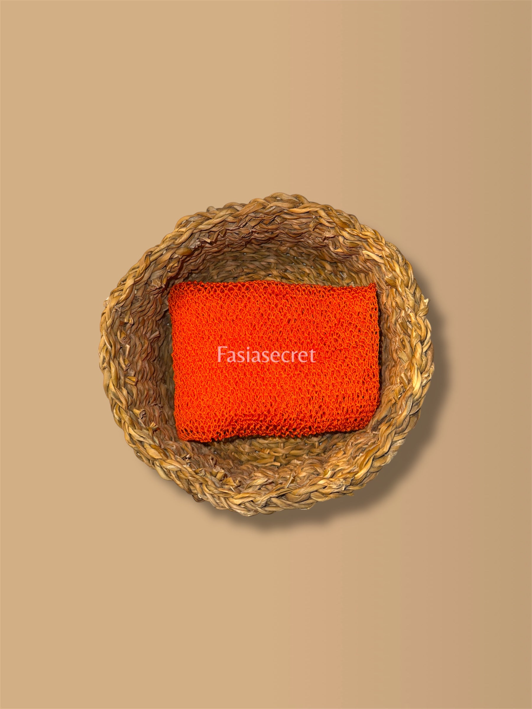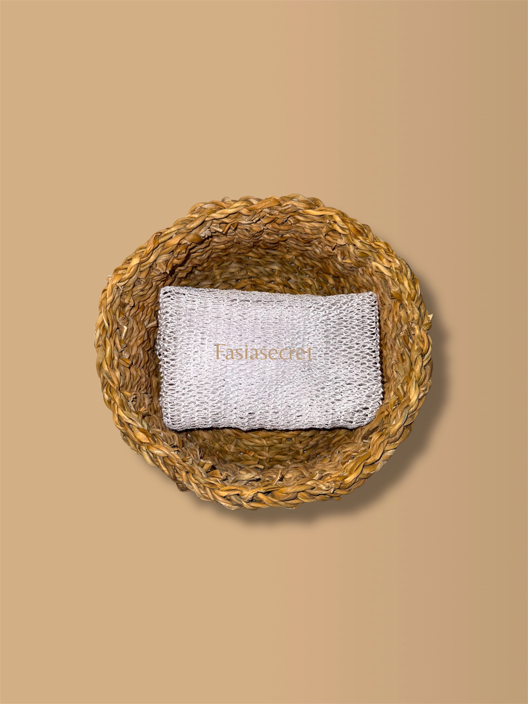 Éponge carrée en filet tressé, le djempé exfolie la peau en douceur, stimule la circulation et élimine les impuretés.
