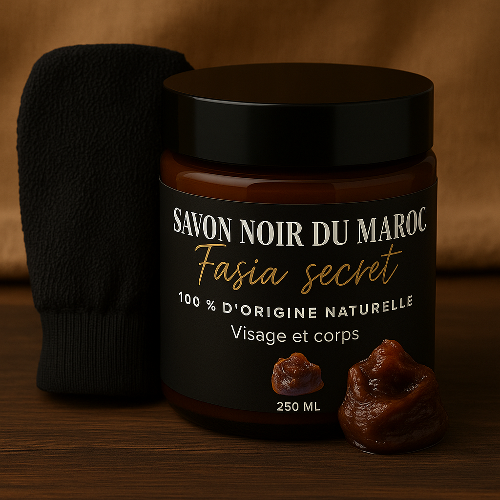 Découvrez le savon noir, un soin naturel venu du Maroc, qui nettoie et adoucit la peau en profondeur, accompagné du gant kessa, un accessoire traditionnel qui exfolie en douceur pour révéler une peau plus lisse et éclatante.